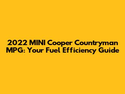 Hey guys! Thinking about grabbing a 2022 MINI Cooper Countryman? Awesome choice! But before you do, let’s dive into something super important: fuel efficiency. Nobody wants to spend a fortune at the pump, right? This guide is all about the 2022 MINI Cooper Countryman MPG (miles per gallon). We'll break down everything you need to know to make an informed decision and keep your wallet happy.