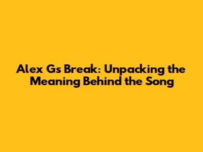 Alex G's Break: Unpacking The Meaning Behind The Song