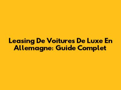 Leasing De Voitures De Luxe En Allemagne: Guide Complet
