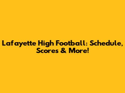 Lafayette High Football: Schedule, Scores & More!