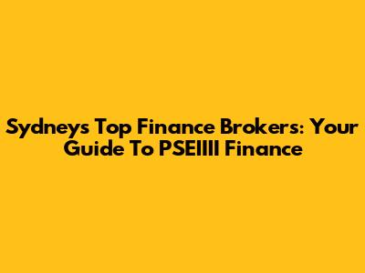 Sydney's Top Finance Brokers: Your Guide To PSEIIII Finance