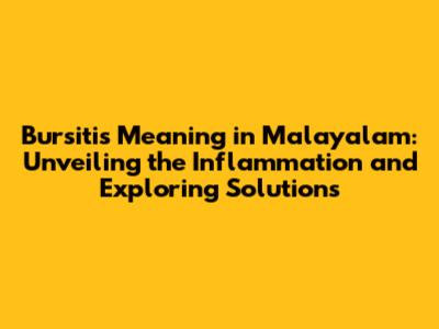 Bursitis Meaning In Malayalam: Causes, Symptoms, And Treatment