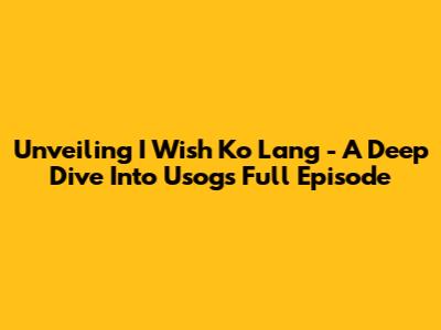 Unveiling 'I Wish Ko Lang' - A Deep Dive Into Usog's Full Episode