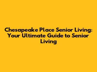 Hey guys! Planning for senior living can feel like navigating a maze, right? But don't worry, we're here to break down everything you need to know about Chesapeake Place Senior Living, making your search a breeze. This guide will cover everything: from the different types of care they offer, the amenities that make life enjoyable, the cost, and how to know if Chesapeake Place is the perfect fit for you or your loved one. Let's dive in and explore what makes Chesapeake Place a top choice for senior living in the area!