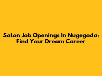 Salon Job Openings In Nugegoda: Find Your Dream Career