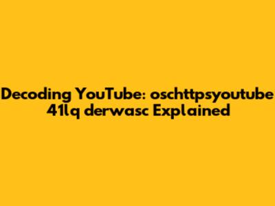 Decoding YouTube: Oschttpsyoutube 41lq Derwasc Explained