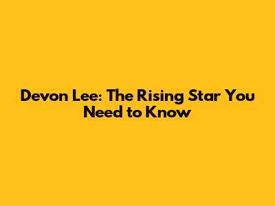 Devon Lee: The Rising Star You Need To Know