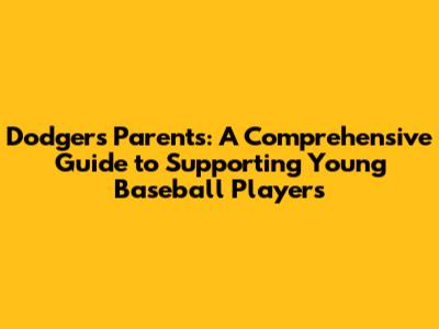 Dodgers Parents: A Guide To Supporting Young Baseball Players
