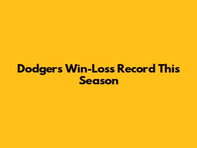 Dodgers Win-Loss Record This Season: Check Now!