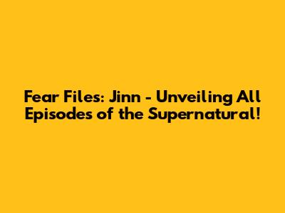 Fear Files: Jinn - Unveiling All Episodes Of The Supernatural!