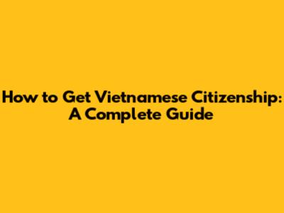 How To Get Vietnamese Citizenship: A Complete Guide