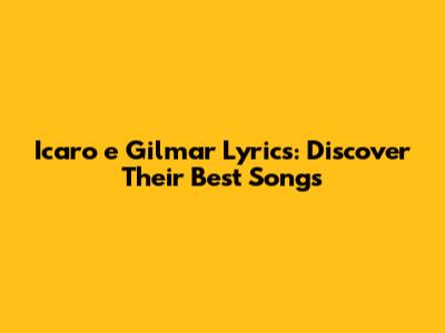 Icaro E Gilmar Lyrics: Discover Their Best Songs
