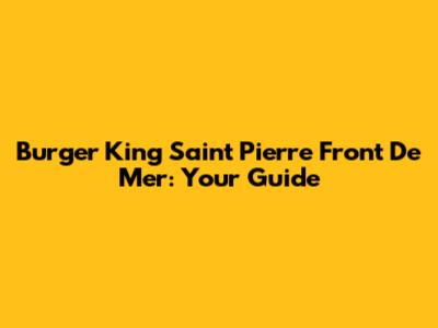 Burger King Saint Pierre Front De Mer: Your Guide