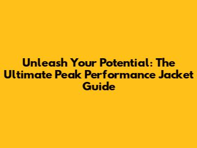 Unleash Your Potential: The Ultimate Peak Performance Jacket Guide