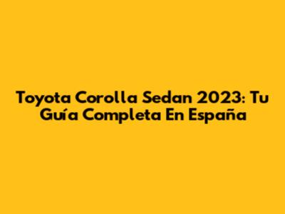 Toyota Corolla Sedan 2023: Tu Guía Completa En España