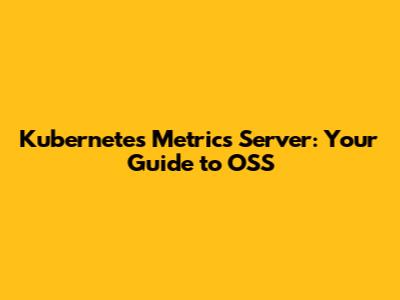 Kubernetes Metrics Server: Your Guide To OSS