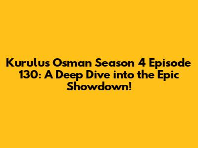 Q: Where can I watch Kurulus Osman Season 4, Episode 130? A: You can watch Kurulus Osman Season 4, Episode 130 on various platforms. These include the official streaming services or channels where the show is available in your region. Check your local listings or online streaming subscriptions for the most up-to-date information.