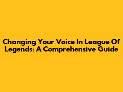 Changing Your Voice In League Of Legends: A Comprehensive Guide