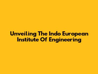 Unveiling The Indo European Institute Of Engineering