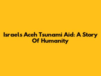 Israel's Aceh Tsunami Aid: A Story Of Humanity