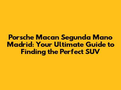 Hey guys! So, you're on the hunt for a Porsche Macan segunda mano in Madrid, huh? Awesome choice! The Macan is a seriously cool SUV – sporty, stylish, and practical. But finding the right used one in a city as vibrant as Madrid can feel a bit overwhelming. That's why I've put together this ultimate guide to help you navigate the used Macan market in Madrid. We'll cover everything from where to look and what to look for, to important things to consider before you make a purchase. Let's dive in and get you closer to cruising the streets of Madrid in your very own Porsche Macan!