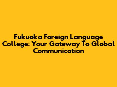 Fukuoka Foreign Language College: Your Gateway To Global Communication