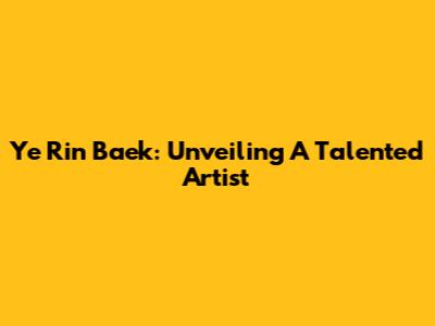 Ye Rin Baek: Unveiling A Talented Artist