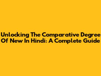 Unlocking The Comparative Degree Of 'New' In Hindi: A Complete Guide