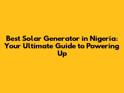 Top Solar Generator Recommendations for Nigeria
