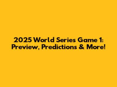 2025 World Series Game 1: Preview, Predictions & More!