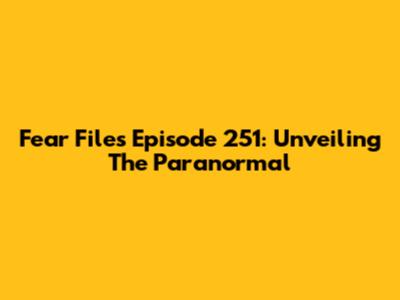 Fear Files Episode 251: Unveiling The Paranormal