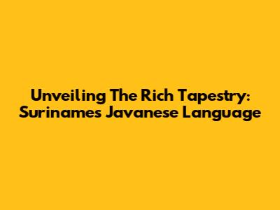 Unveiling The Rich Tapestry: Suriname's Javanese Language