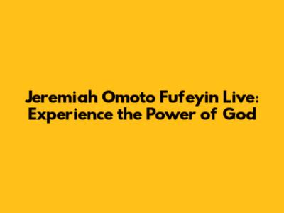 Jeremiah Omoto Fufeyin Live is more than just a live stream; it's a divine encounter that can change your life forever. Don't miss out on this incredible opportunity to experience the power of God firsthand. Tune in, believe, and be ready to receive your miracle! God bless you!